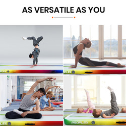 Engineered to be thick and durable, the Proflex Air Track is crafted with premium 1000-denier drop stitch technology and the combination of rail band and high density PVC fabric. Offering plenty of bounce and ensuring the right amount of stability. You??l have the control you need to stick landings during even the most complex gymnastics or martial arts routines!