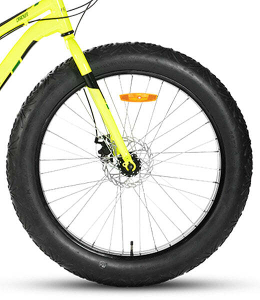 Running 26 by 4 wide Fat Tyres, the Cracker is designed to handle terrain that would be impossible on a regular bike. The big footprint of a fat bike tyre distributes load over a bigger area & provides excellent traction on climbs or even cornering.