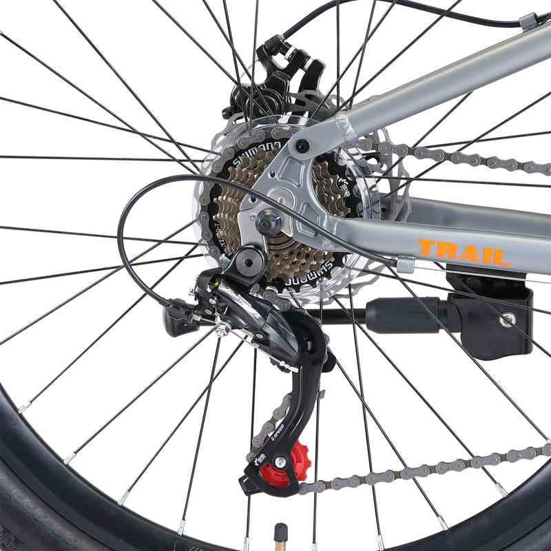 Take the edge off rough trails, and ride in comfort with a full suspension set-up with the Trail Mountain Bike.