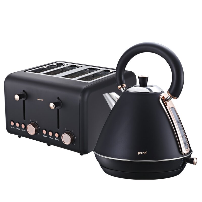 Pronti Rose Trim Collection Toaster & Kettle Bundle - Black