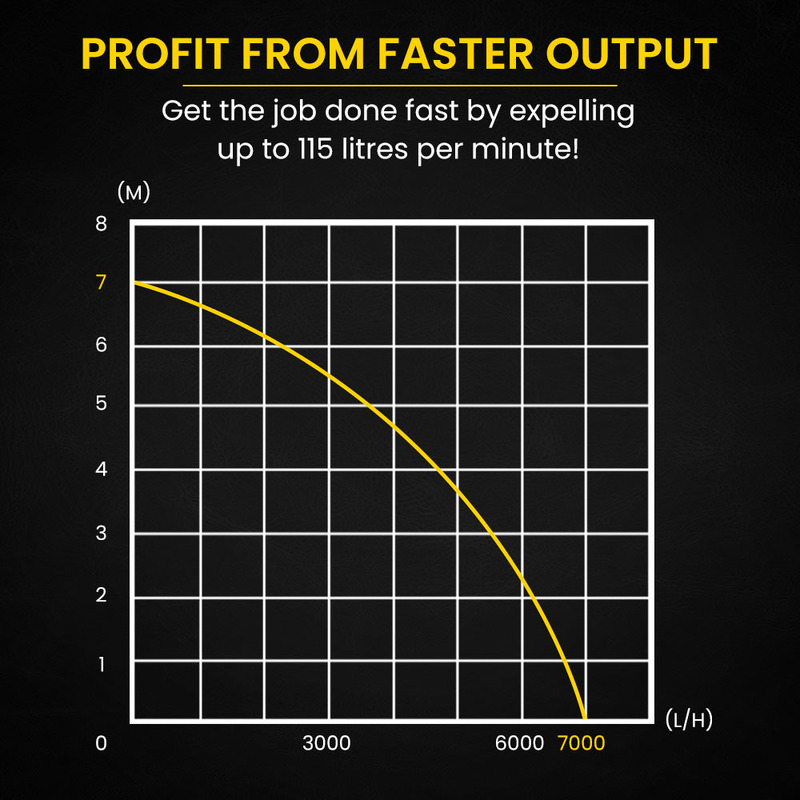 This exceptional pump brings enormous capacity in a compact unit. With a powerful 400 watt motor, it can expel up to 7,000 litres per hour, and has an impressive 7 metre maximum head capability!
