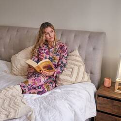 A stylish and cute pajama set to make it possible to enjoy anything life has to offer in leisure and comfort whether enjoying the morning coffee on the sofa or cozying up on a winter night watching a movie on Netflix.