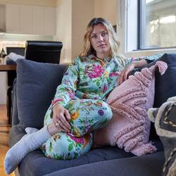 A stylish and cute pajama set to make it possible to enjoy anything life has to offer in leisure and comfort whether enjoying the morning coffee on the sofa or cozying up on a winter night watching a movie on Netflix.