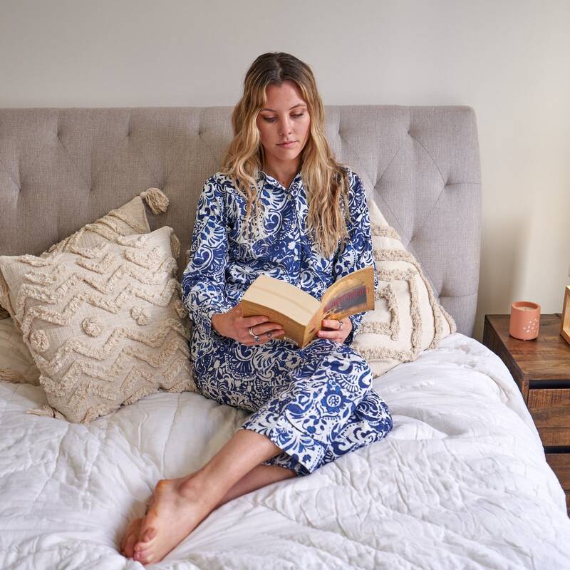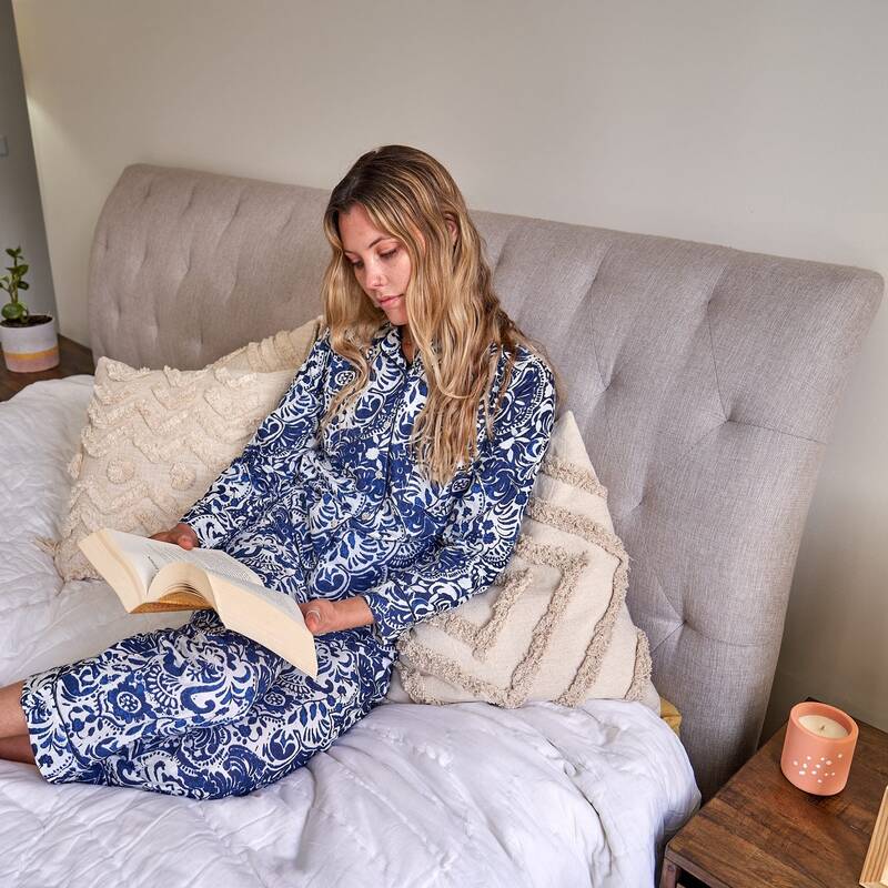 A stylish and cute pajama set to make it possible to enjoy anything life has to offer in leisure and comfort whether enjoying the morning coffee on the sofa or cozying up on a winter night watching a movie on Netflix.