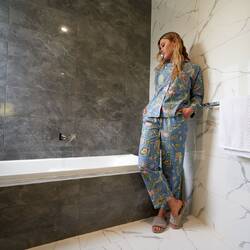 A stylish and cute pajama set to make it possible to enjoy anything life has to offer in leisure and comfort whether enjoying the morning coffee on the sofa or cozying up on a winter night watching a movie on Netflix.