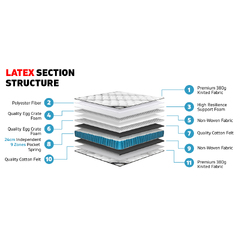 Single Size Memory Foam Mattress, 9 Zone Pocket Spring, Latex