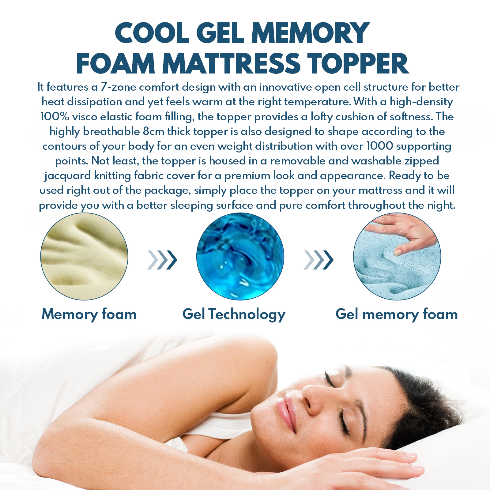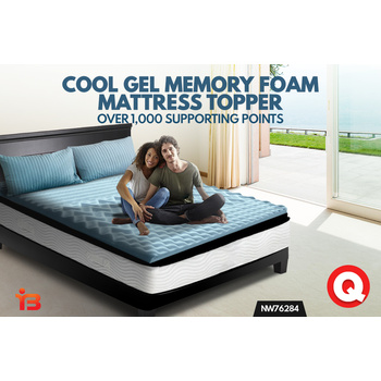 Queen Size Cool Gel Memory Foam Mattress Topper Bamboo Cover 8CM 7-Zone