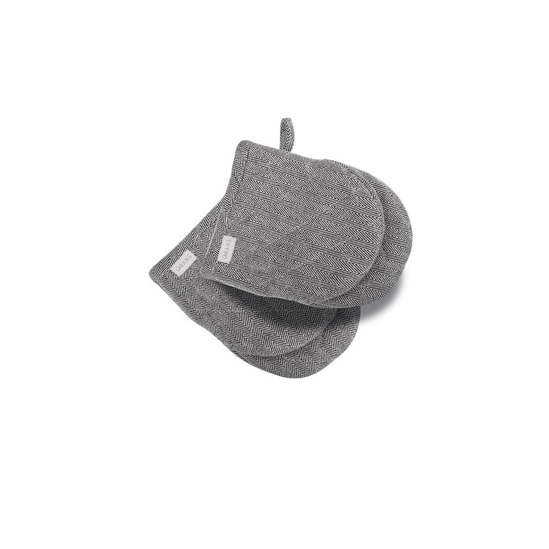 Rans Herringbone Black Cotton Set of 2 Oven Mini Gloves