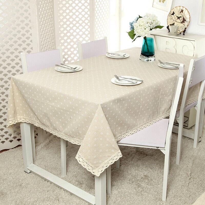 Rectangle Square Tablecloth Table Cover Flower Pattern Dining Table Cloth W/Lace