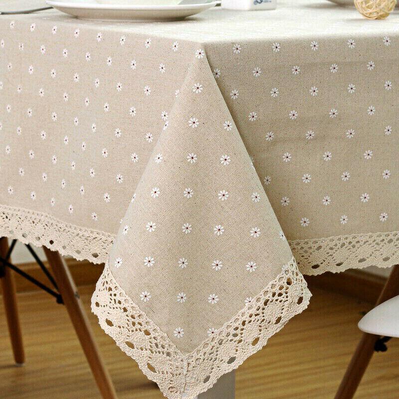 Rectangle Square Tablecloth Table Cover Flower Pattern Dining Table Cloth W/Lace
