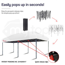 The Red Track Portable 3x6m Gazebos are designed with convenience, stability, and durability in mind. Featuring a patented design, this Red Track Gazebo folds down to be the most compact 3x6m model on the market, for convenient transportation and storage.