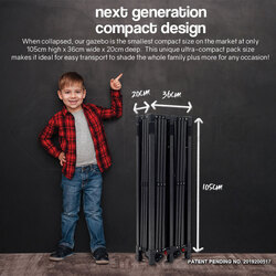 Once the event is done, dismantling is a cinch as the Red Track folds away neatly into the most compact package ready to be tucked away in the backseat or boot of your car. Whether its for your next family gathering or a garden soir?e, the Red Track 3x6m Gazebo has you and your event covered.