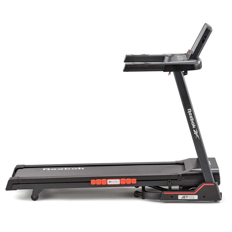 The Reebok Jet 100z Treadmill is ideal for home cardio fitness thanks to its 2.0 Hp motor, which delivers speeds of 1 18 km/h (0.6 11 mph) across 12 levels of electronic incline. Designed with Air Motion cushioning technology, the Jet 100z reacts to each foot strike, transferring air between the cushioning pods to offer support where it's needed most. Creating a more stable and forgiving platform, the Air Motion technology brings comfort and performance to your runs.