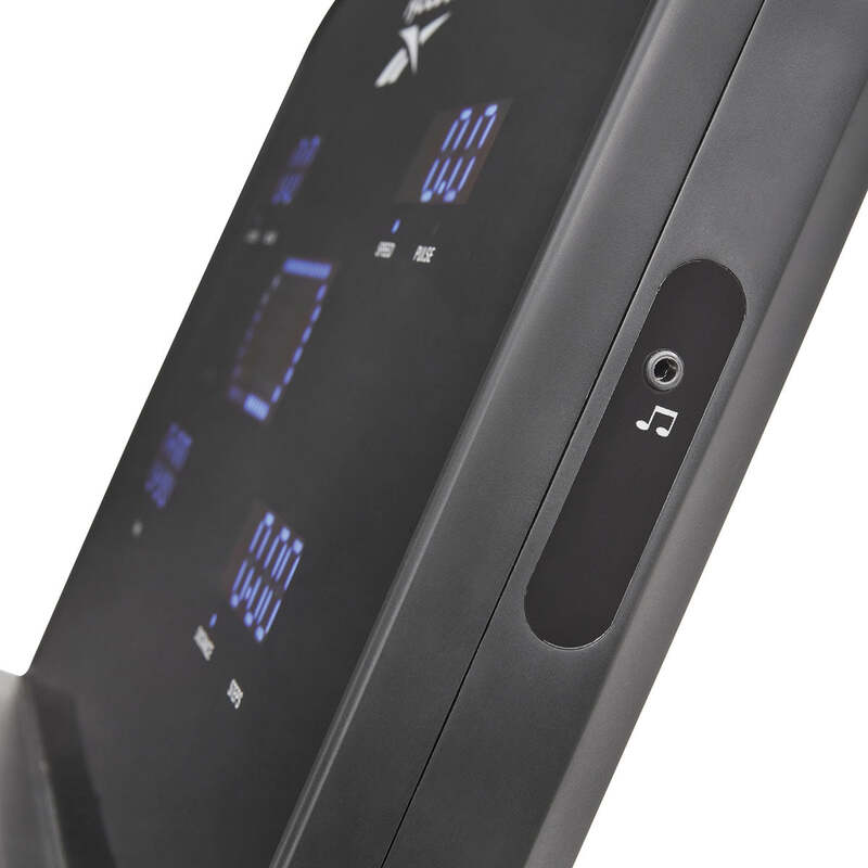 Shows: Speed, time, distance, calories, incline, steps, heart rate and bodyfat