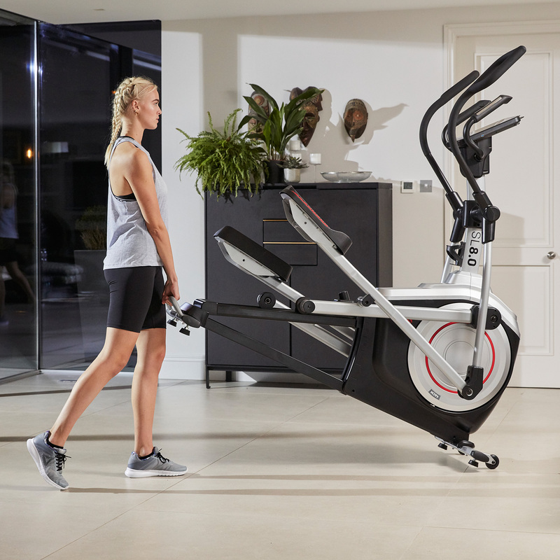 With a 9 kg flywheel at the helm of the SL8.0, the front-driven elliptical lays a more stable foundation for elite home cardio. Compared to rear-driven trainers, the SL8.0 shallows and extends each stride for more fluid motion.