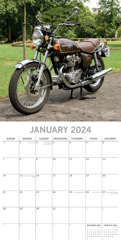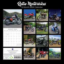 Retro Motorbikes - 2024 Square Wall Calendar 16 Months Planner New Year Gift