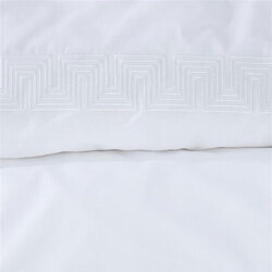 Chic, elegant, timeless, and sophisticated - they all describe the Elowen White Cotton Quilt Cover Set by Riviera Maison. This beautiful, white duvet cover features a narrow horizontal band with an embroidered geometric pattern on the front. The pillowcases are finished all around with a decorative oxford border with the same embroidered pattern. The quilt cover Elowen combines well with the Helena decorative cushion, which also features this geometric pattern. The quilt cover is packaged in a luxury gift box, including a gorgeously scented lavender sachet. The box is easily reusable. A great gift for yourself or someone else.