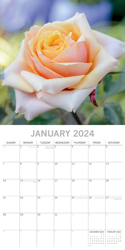 Roses 2024 Square Wall Calendar 16 Months Floral Planner Christmas New Year Gift