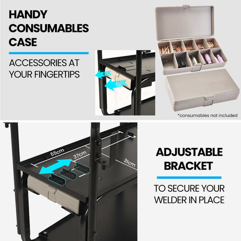 ROSSI Heavy-Duty 160kg Capacity Welding Cart Trolley, with Consumables Case