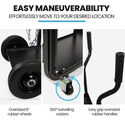 - Wheels: 2 x 8” rubber, 2 x 360° swivel castors