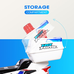 The ROVO motorcycle for kids boasts an incredible array of features including realistic engine sounds, forward and reverse motion, a horn, headlight and electronic brake!