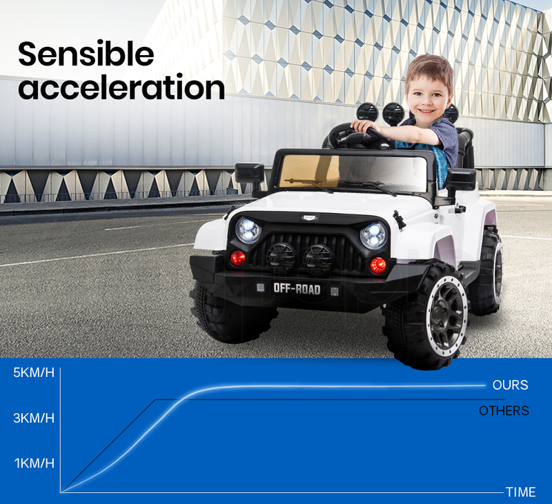 ROVO KIDS Jeep Inspired Ride-On Car Children Electric Toy 4WD 12V White