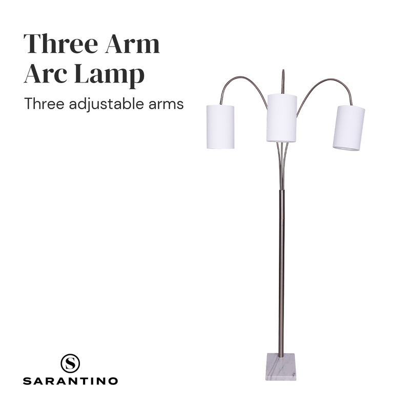 Sarantino 3-Light Metal Arc Floor Lamp - Nickel & Marble Finish