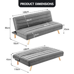 Sarantino 3 Seater Modular Linen Fabric Sofa Bed Couch - Dark Grey