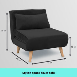 Sarantino Adjustable Chair Single Sofa Bed Faux Velvet - Black