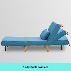 Sarantino Adjustable Corner Sofa 1 Seater Lounge Linen Bed Seat - Blue