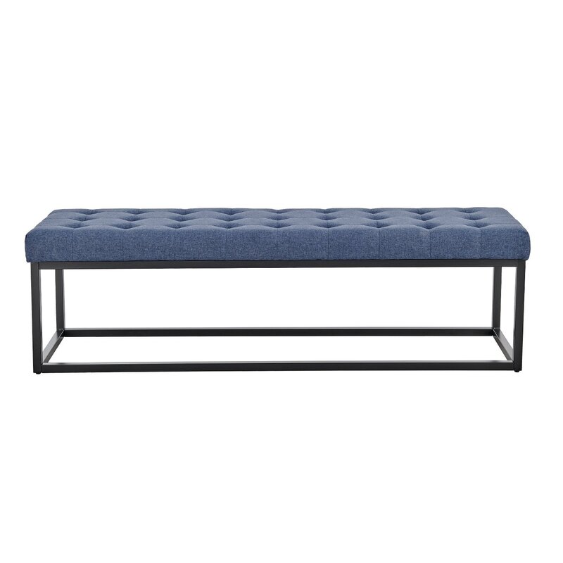 Sarantino Cameron Button-tufted Upholstered Bench With Metal Legs - Blue Linen