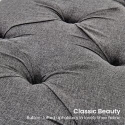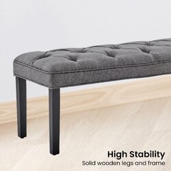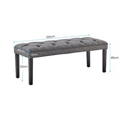 The button-tufted upholstery is made with breathable linen and sits on top of solid wooden legs for superior durability. This bench measures 123cm wide and offers generous seating for you and your guests. Choose from three fabulous shades to complement your existing home decor!