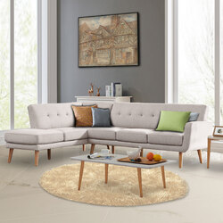 - Faux Linen Upholstered Sofa with Chaise