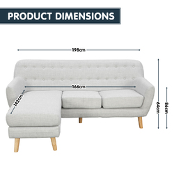 Upholstered in an easy-clean, high-grade, linen fabric with durable stitching, this 3 seater sofa with chaise gives you the contemporary and luxury look.