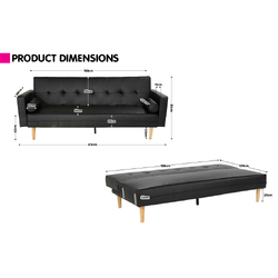 Sarantino Madison Faux Leather Sofa Bed Lounge Couch Futon Furniture Home Suite - Black