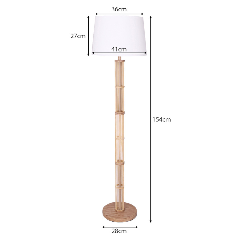 Sarantino Rattan Floor Lamp With Off-White Linen Shade by Sarantino