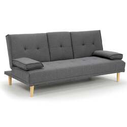 Measuring (w) 185cm x (d) 90cm x (h) 82cm, this sofa bed features timber frame as well as 2 cup holder spaces and comfort seating to provide a sofa that's truly comfortable to sink back into and relax.