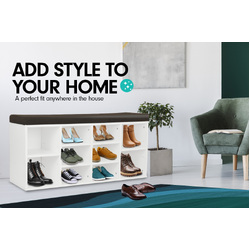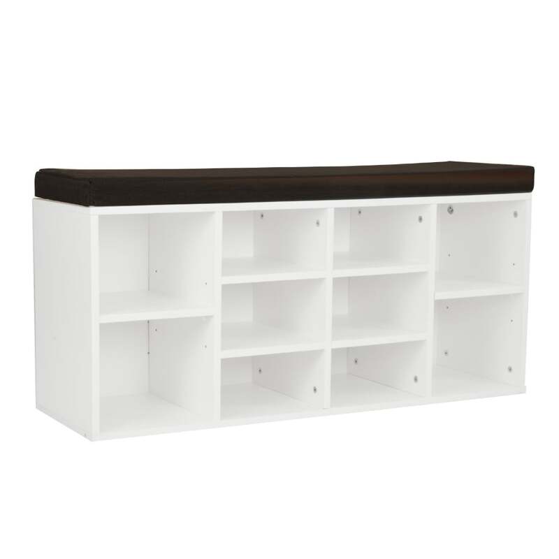 Sarantino Shoe Rack Cabinet Organiser Brown Cushion Bench Stool - 104 X 30 X 45 - White