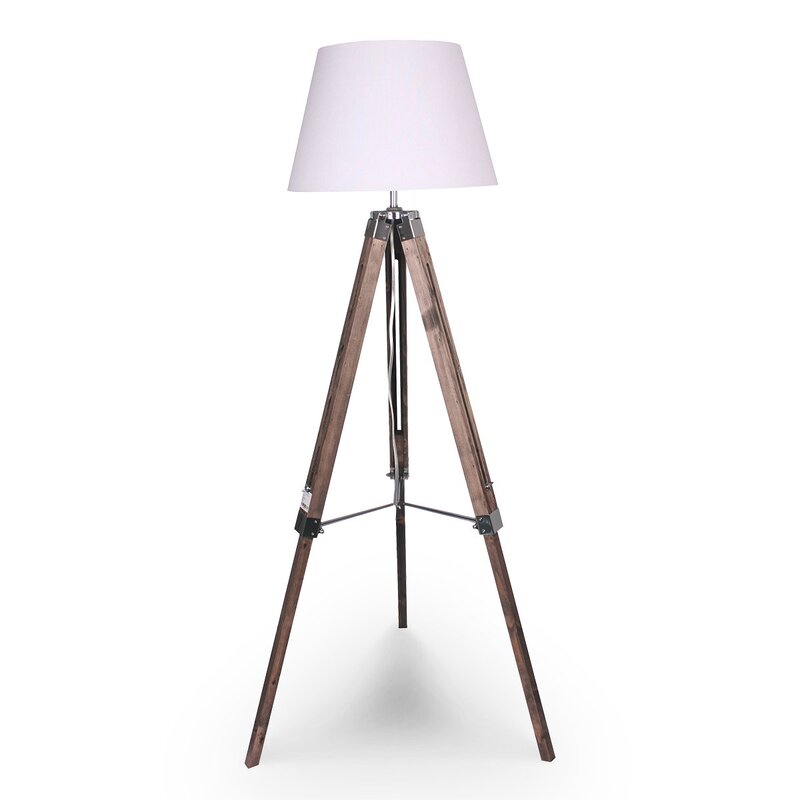 Sarantino Solid Wood Tripod Floor Lamp Adjustable Height White Shade