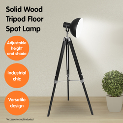 The tripod is made of solid wood and can be raised or lowered to your preferred height. The metal dome shade casts a wide light, making this floor lamp ideal for lighting up bigger areas. Silver metal fittings complete the look and give the spot lamp its luxe modern feel.