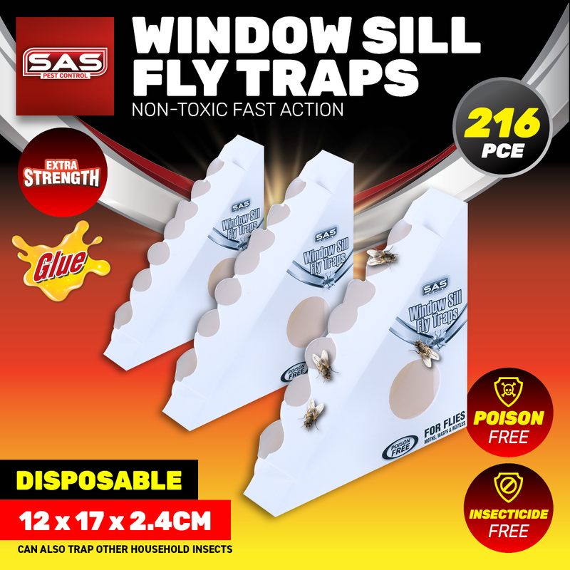 SAS Pest Control 216PCE Window Sill Fly/Insect Traps Ready To Use 12 x 17cm