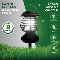 SAS Pest Control?? 2-in-1 designed solar light and insect zappers that include a rechargable battery. Included are ground stakes to attach to the base of the lantern if you wish to place in the groung or simply carry and place on flat surfaces. A useful and handy 2- mode light source and chemical-free insect repellent .