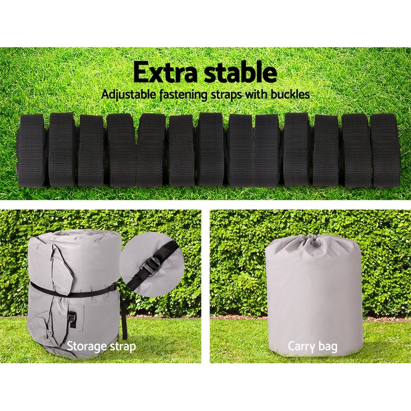 Tying down the Cover to the trailer is easy with the supplied adjustable fastening straps and heavy-duty loops. A zipped entrance at the side provides for easy access inside without dismantling any loops or straps. Not least, the Cover can be easily stored away with the supplied carry bag that comes with a handy carry strap.