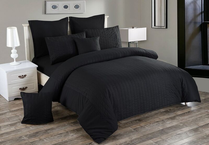 Seersucker Queen Size Black Duvet Quilt Cover Set