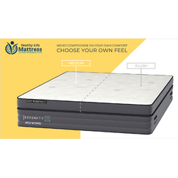 The Serenity mattress by Healthy Life provides 6 feel options, Super Firm, Firm, Medium, Plush and Ultra Plush. In Queen & King sizes you can choose split feels, so you and your partner can have the comfort level you want to ensure a better sleep for everyone.