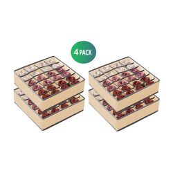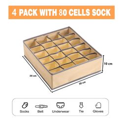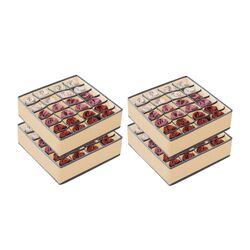 Set of 4 Fabric Drawer Organizer Divider Storage Boxes for Storing Socks, Underwear, Ties, Scarves (Beige)