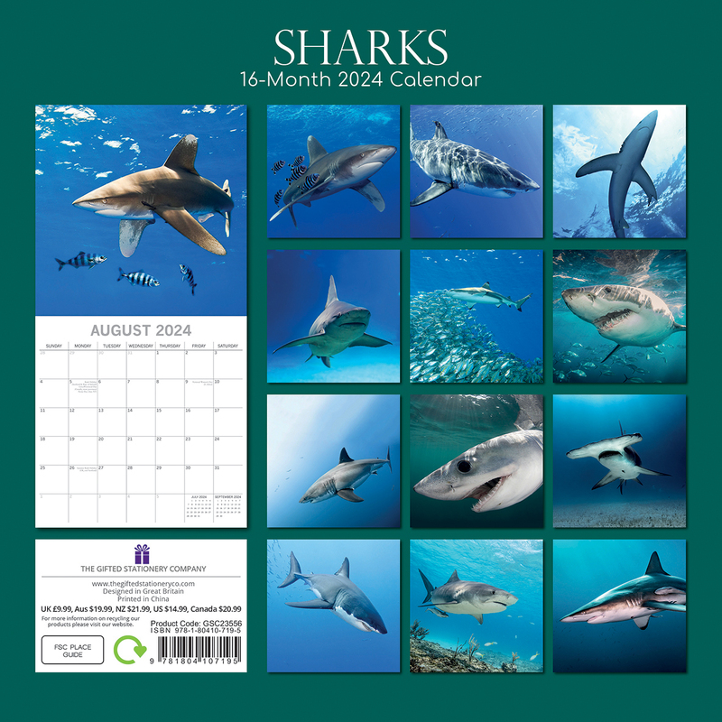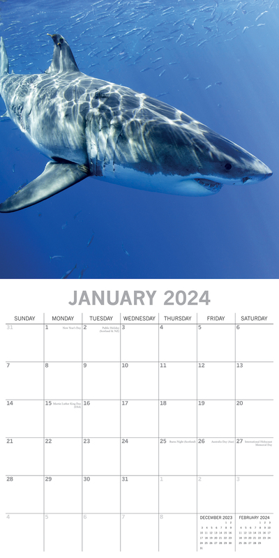 Sharks 2024 Square Wall Calendar Pets Animals 16Month New Year Christmas Planner