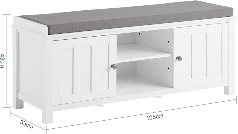- This sturdy and spacious storage solution is perfect for any space. It measures 105cm in width, 35cm in depth and 43cm in height, and has a weight of 16.8kg. With a load capacity of 100kg, it can easily store and organize all your belongings.
