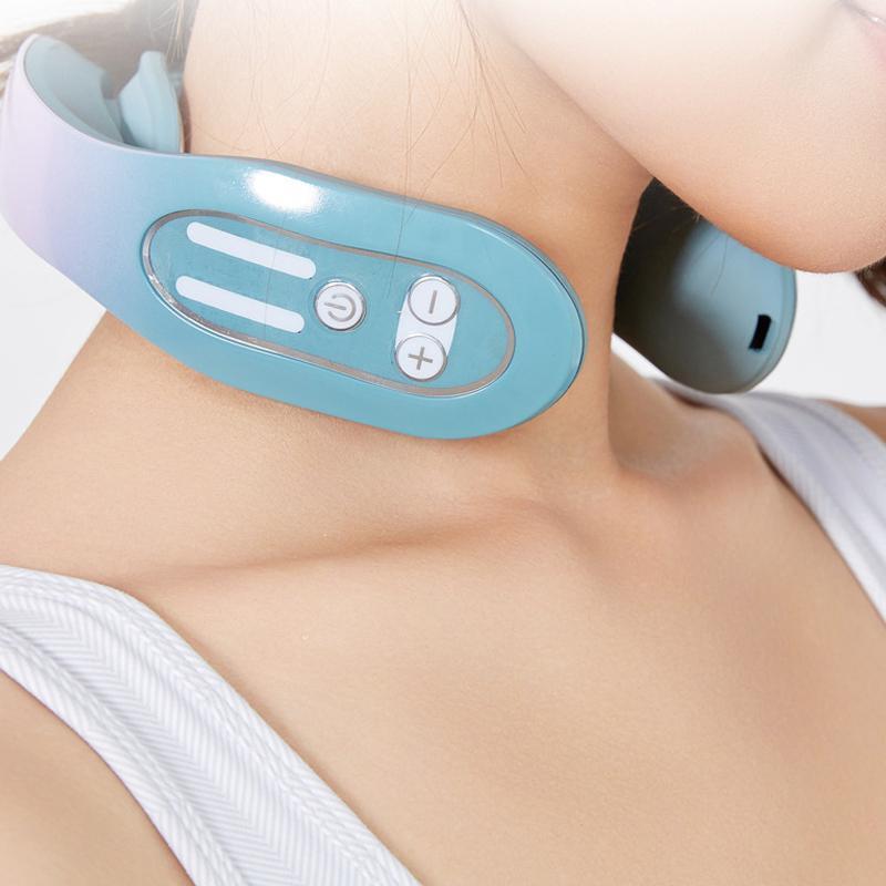 ?Multi-mode neck massager?The blue upgrade versiono neck messager provides 4 modes and 12 levels of indensity, 42degrees constant heat compress massage. Users can select the appropriate mode according to personal needs. For beginners, it is recommended to start with the lowest intensity.