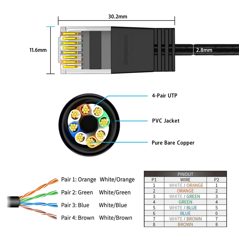 - Cable Type: 4-Pair UTP 100% Bare Copper